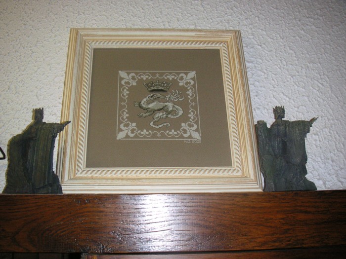 La salamandre " de " Boulet doré" blason de la ville où je vis : Le Havre, entourée des statues de l'Argonath du "Seigneur des Anneaux" |