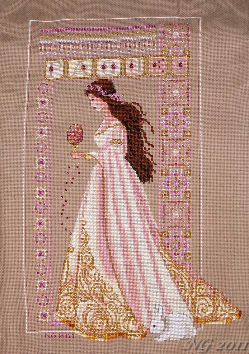 Conversion d'après la "celtic summer" de lavender and lace (Copyright Lavender and Lace 56) Le lapin est extrait de "enchanted alphabet" (Copyright Lavender and Lace 12) /!\ Le travail effectué sur la manche, les changements dans les cheveux et l'oeuf ainsi que sur les couleurs sont ma propriété intellectuelle. Dans la mesure du possible, au regard des modifications, la conversion de couleur est donnée sous la photo et seulement la conversion de couleur. |