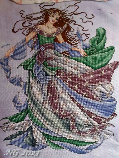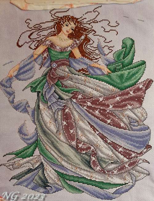2e de la série des "fées météorologique, ma "fairy of the wind" est brodée sur la même toile silkweaver que ma "fairy of the rainbow".