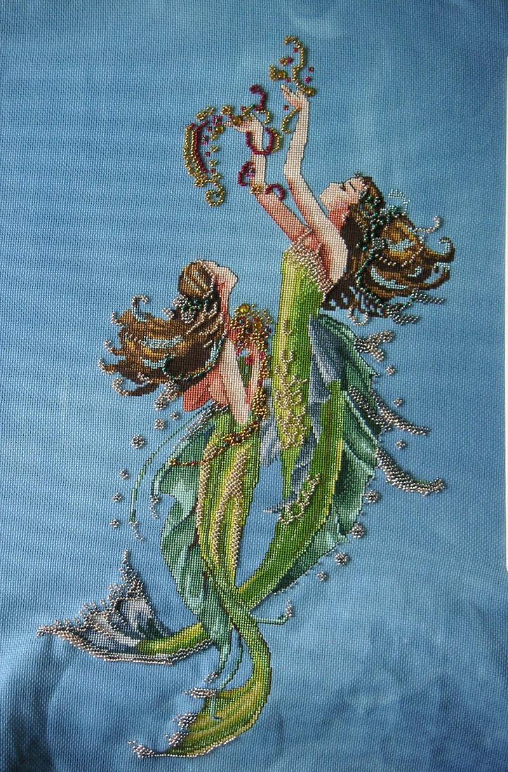 Projet fait en SAL avec le forum des "Féériques". J'ai choisi de la broder sur une toile Silkweaver "Ocean fantasy". Début en janvier 2006, finies le 29 juin 2006. Photo provisoire en attendant les dernières retouches et ensuite l'encadrement.