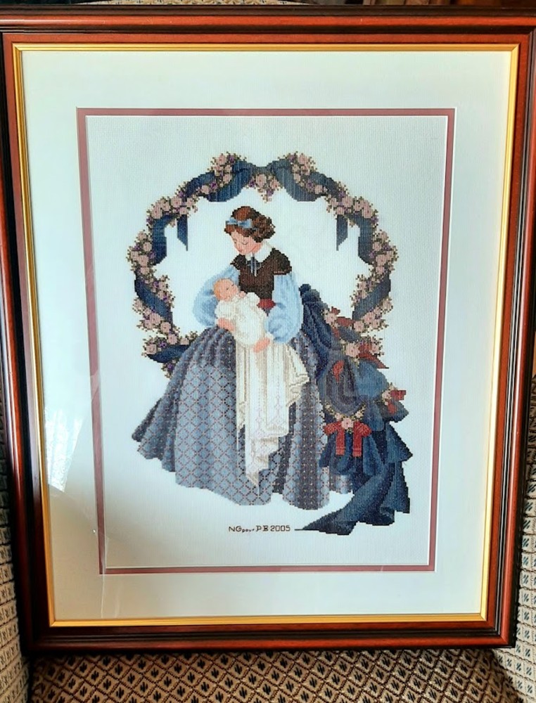 Modèle réalisé pour mon amie Pascale qui a choisi une toile blanc cassé pour ce modèle qui la faisait rêver. La photo sera remplacée après l'encadrement.